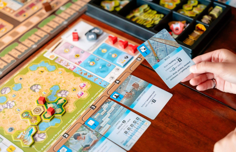 In Ark Nova, you will plan and design a modern, scientifically managed zoo. With the ultimate goal of owning the most successful zoological establishment, you will build enclosures, accommodate animals, and support conservation projects all over the world. Specialists and unique buildings will help you in achieving this goal.