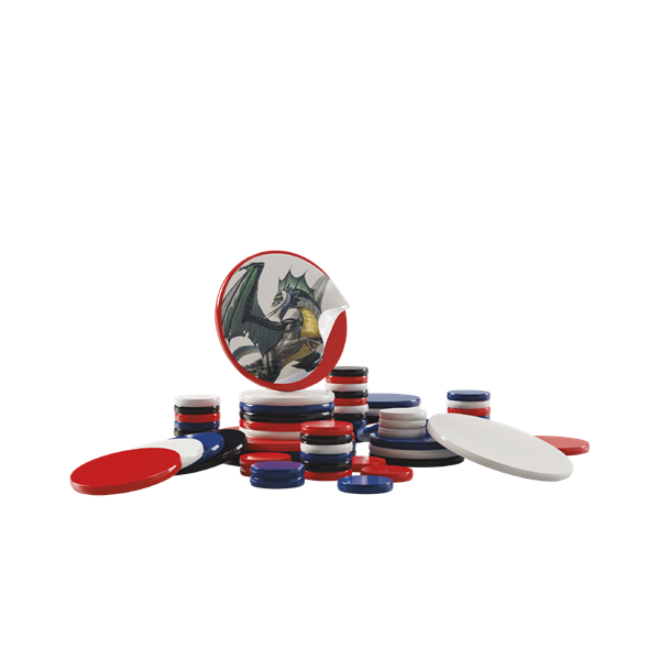 64 weighted plastic discs that come in 3 sizes and 4 colors for maximum flexibility in encounter creation: 40 medium sized creature tokens, 20 large sized creature tokens, 4 huge sized creature tokens