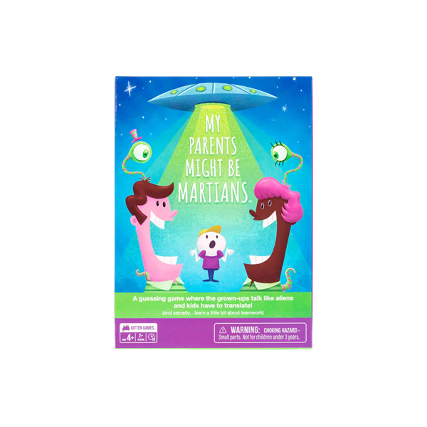 In My Parents Might Be Martians, the goal is for the Martians to get their Human friends to guess a word by only using clues with single-syllable words. The Humans have to work together to make sense of your silly speech before the timer runs out. This game is an out-of-this-world way to improve your little ones’ teamwork and language skills.