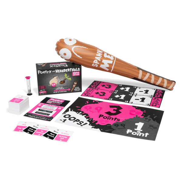 Poetry for Neanderthals: NSFW Edition is an adult party game where players earn points by getting their teammates to guess words and phrases. The catch is that they are only allowed to use single-syllable words. Enjoy getting grandma to guess phrases like “nudist beach,” “mile high club,” or “banana hammock,” but be careful. If you use any words with more than one syllable, the other team gets to spank you with the 2-foot inflatable Spank Stick. But maybe that’s not such a bad thing?