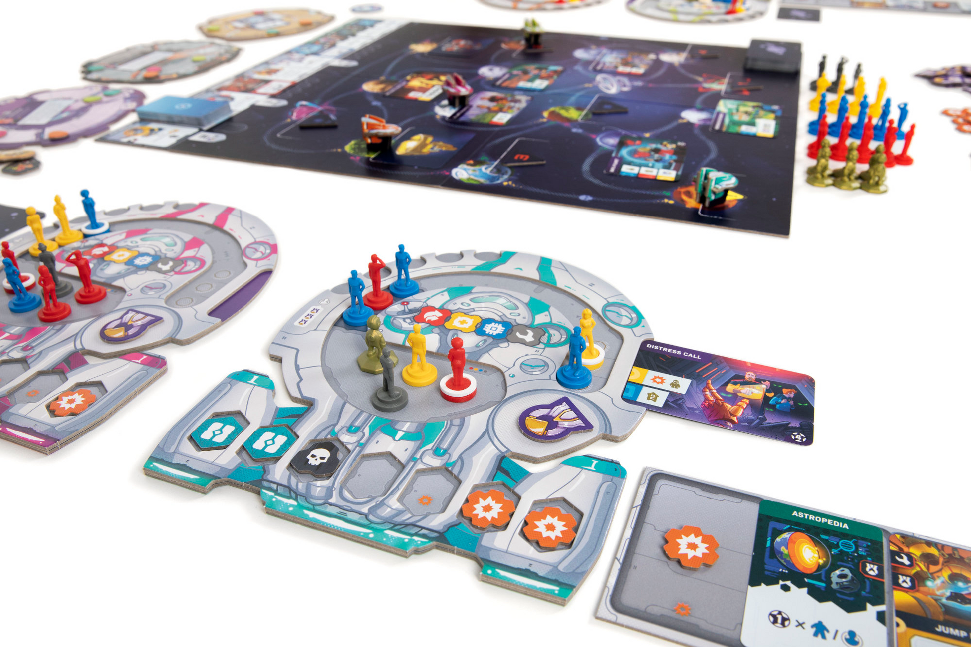Settle into the captain’s chair of your very first star cruiser and get ready to embark on an exciting voyage through the depths of space in this euro-style action selection and engine building game for 1-4 players.
