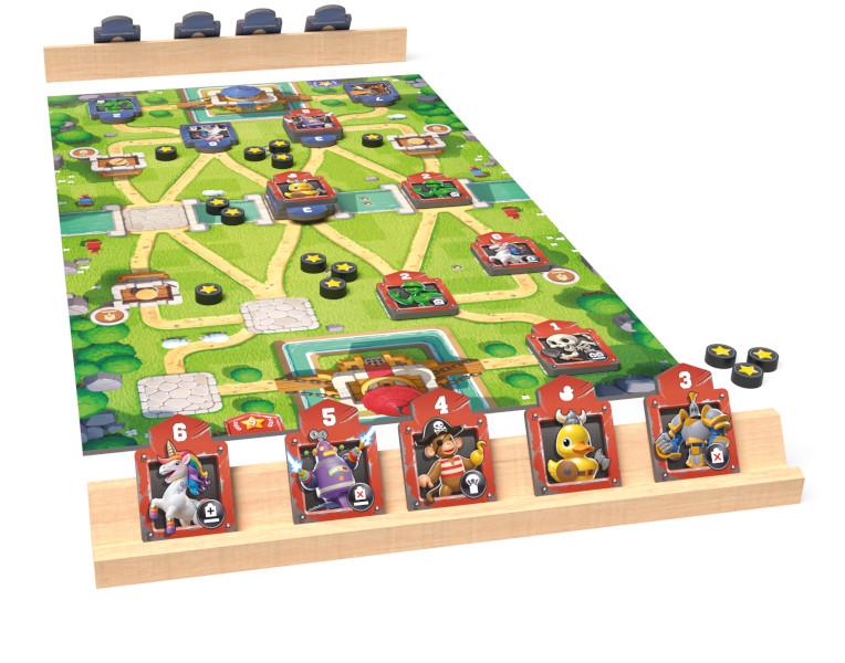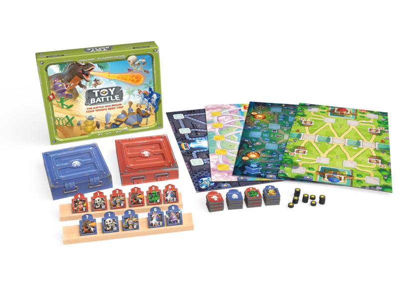 In Toy Battle, each player deploys toy troops on whimsical boards—from castles to jungles to space stations.
