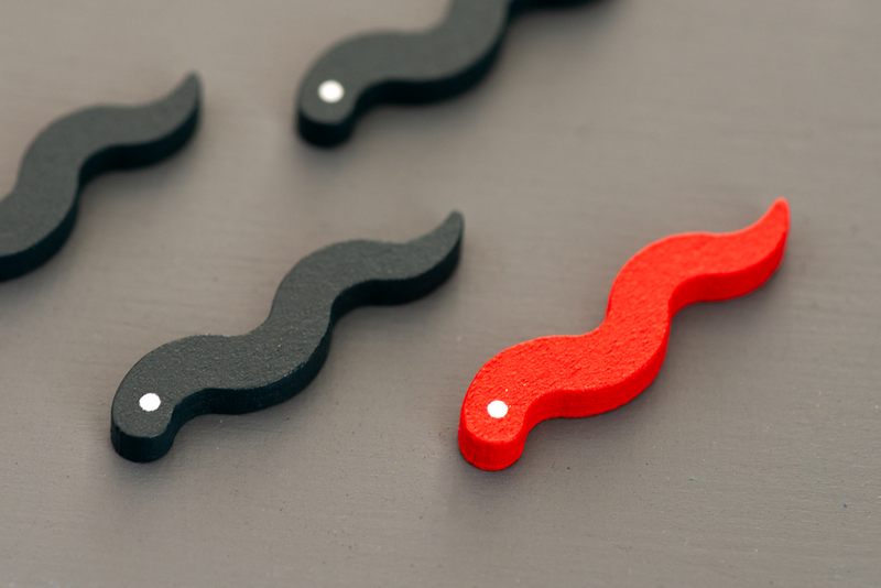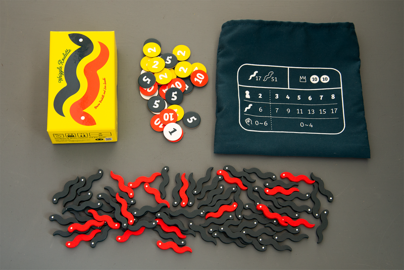 In Wriggle Roulette, those who repeatedly plunge their hands into the dark mud and grab the most eels gain the glory! But eels aren't the only thing lurking within. There are many frightening snakes, too! Only those who grab the most lose everything. Should you grab many, just a few, or quit while you're ahead? Carefully observe your opponents and make your choice!